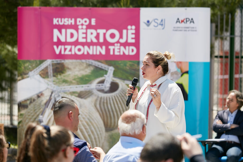 Actors in the system, including vocational “Ali Myftiu” school supported by S4J, the National Agency for Employment and Skills (NAES), Elbasan municipality and construction companies participated in a comprehensive event aiming to increase school visibility and interest of both students and companies.