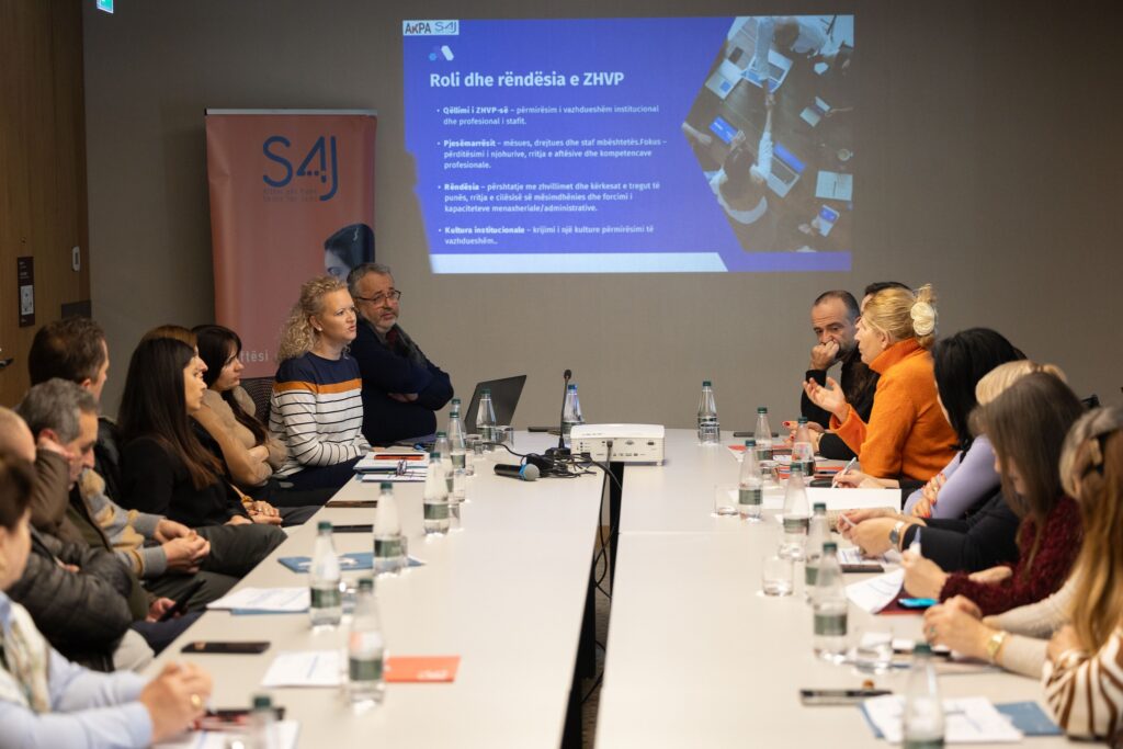 Agjencia Kombëtare e Punësimit dhe Aftësive (AKPA) në bashkëpunim me projektin “Aftësi për Punë” (S4J) organizoi trajnimin kombëtar të dedikuar menaxhimit të burimeve njerëzore në institucionet e arsimit dhe formimit profesional (AFP), me pjesëmarrjen e drejtorëve, specialistëve të burimeve njerëzore dhe koordinatorëve të zhvillimit të vazhduar profesional. Në trajnim morën pjesë edhe përfaqësues nga Agjencia Kombëtare e Arsimit, Formimit Profesional dhe Kualifikimeve (AKAFPK).